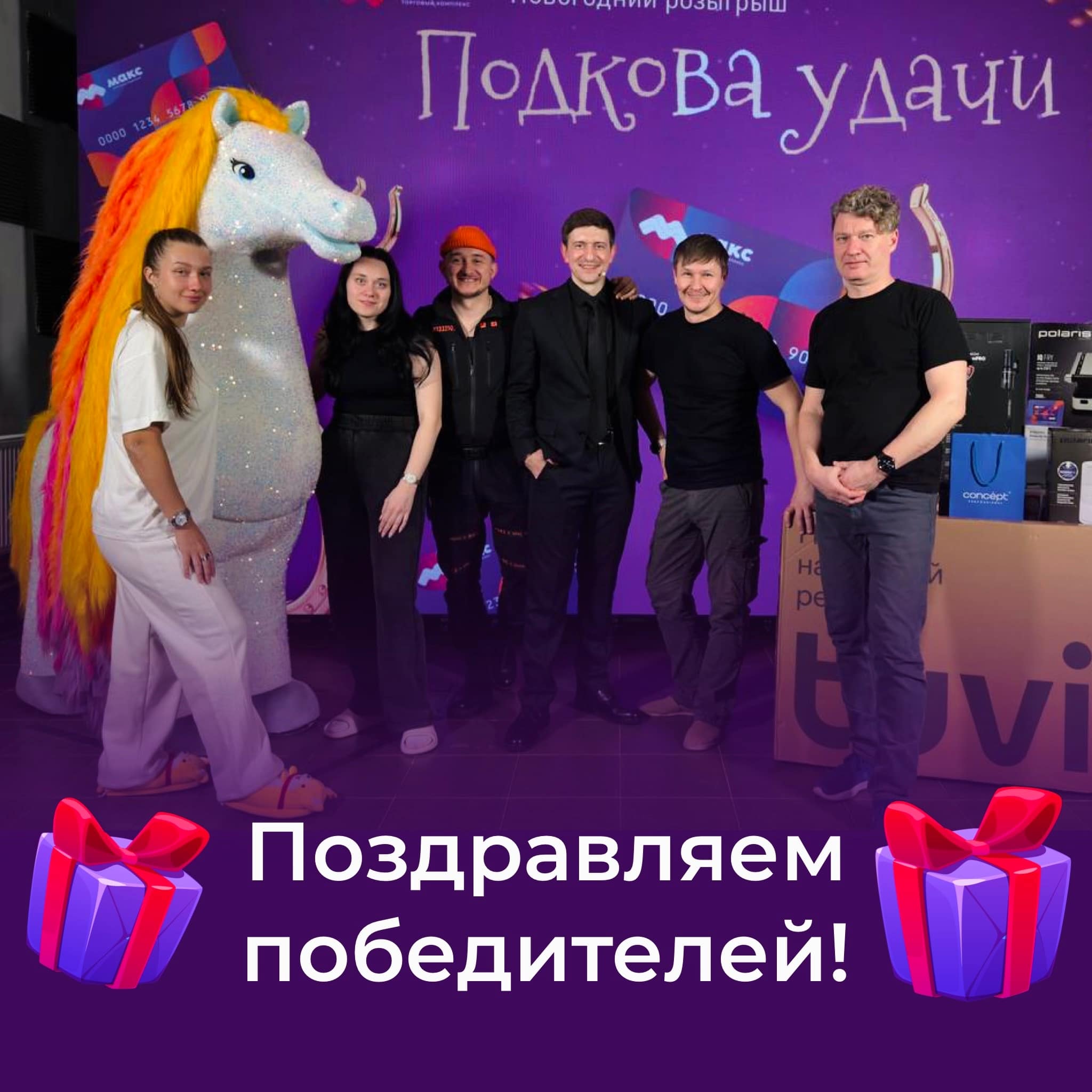 В прямом эфире мы узнали имена всех победителей новогодней акции ПОДКОВА УДАЧИ и вручили 36 призов