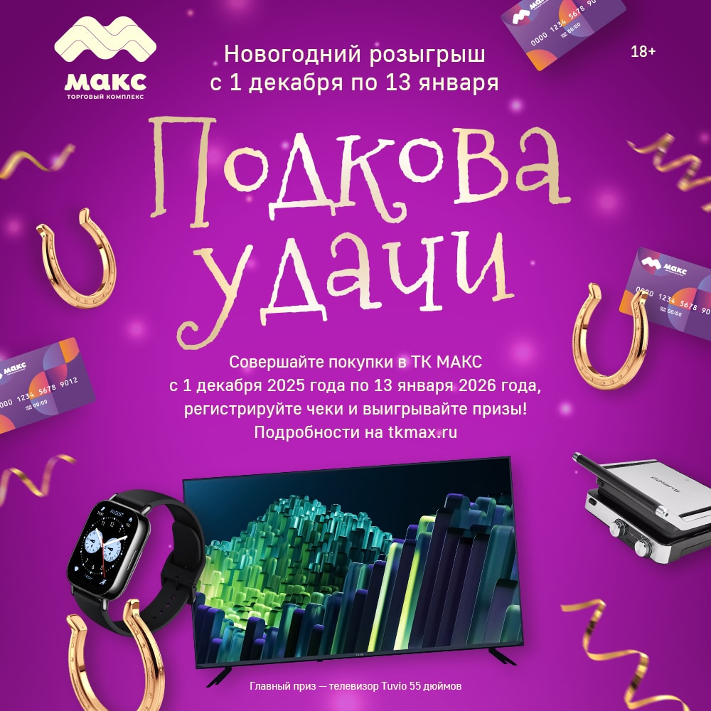 Ʊ БОЛЬШОЙ НОВОГОДНИЙ РОЗЫГРЫШ ПРИЗОВ - ПОДКОВА УДАЧИ ОТ ТК МАКС